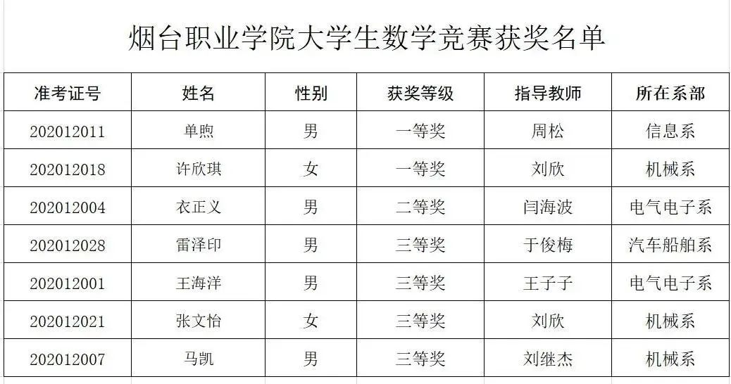 近日,第十一届山东省大学生数学竞赛成绩公布,英国正版365官方网站荣获2个一等奖、1个二等奖、4个三等奖。