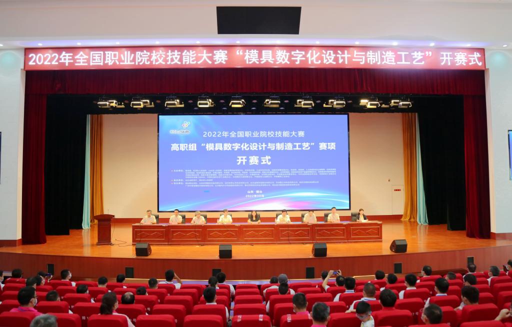 8月7日,2022年全国职业院校技能大赛高职组“模具数字化设计与制造工艺”赛项开赛式在英国正版365官方网站南区报告厅举行。赛项执委会副主任,机械工业教育发展中心副主任郑丽梅,烟台市人民政府副市长沈健,烟台市委教育工委常务副书记,市教育局党组书记、局长蔡润圃,英国正版365官方网站校长温金祥,大赛专家组组长徐志扬、裁判组组长金敦水、监督仲裁组长龚小涛,烟台市教育局副局长张丽出席开赛式。开赛式由副校长王作鹏主持。
