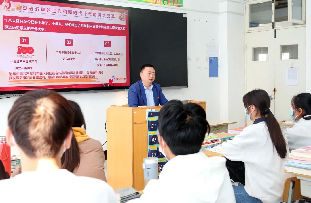 鞠洪海重点围绕“深刻学习领会党的二十大召开的重大历史性意义”“党的二十大报告主要内容”等方面进行了全面解读和系统阐述。他对同学们提出三点希望:一是坚定信念,争做党的二十大精神的宣传者和践行者,坚持学以致用、知行合一,把伟大的思想力量转化成为坚定内心的力量。二是直面挑战,争做新征程中的追梦奋斗者,努力拼搏、奋勇争先,将个人奋斗的“小目标”融入党和国家事业的“大蓝图”。三是踔厉奋发,争做民族复兴的国家栋梁,不断提高专业素质与知识储备,志存高远,在全面建设社会主义现代化国家新征程上勇毅前行。