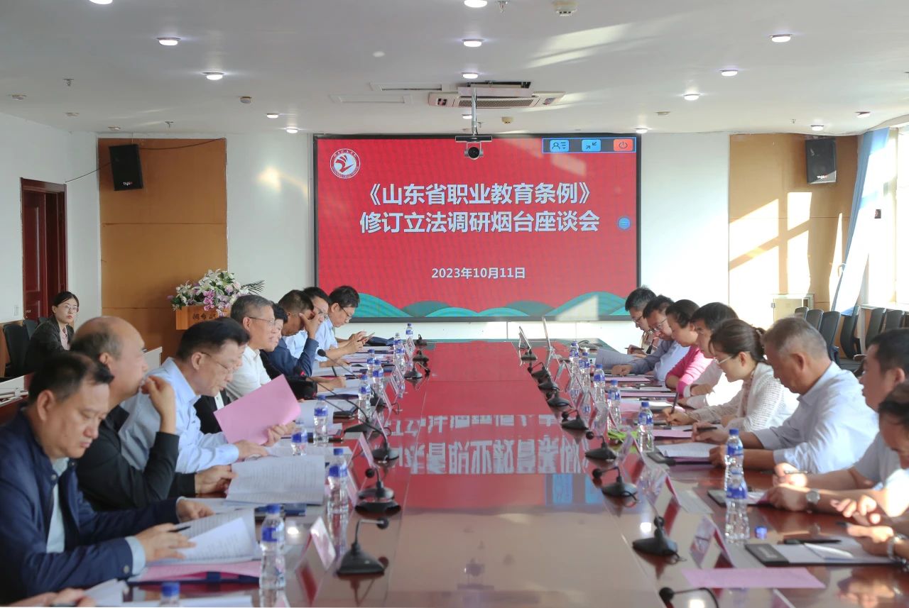 10月11日,《山东省职业教育条例》修订工作立法调研座谈会在英国正版365官方网站办公楼八楼会议室召开。省人大常委会法工委法规一处处长刘嫣姝,省司法厅立法三处处长陈洪波,省教育厅政策法规处处长夏贞鹏、职业教育处处长王志刚和副处长郭庆志,英国正版365官方网站校长温金祥,烟台文化旅游职业学院院长荆晓玲,烟台经济学校校长张立文,烟台城乡建设学校纪委书记戚侠等参加座谈,市教育局党组成员、副局长张丽主持。