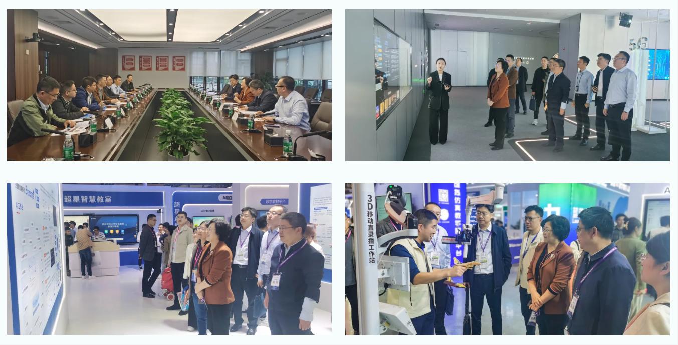 期间,陈新姿一行还赴中移物联网公司走访,调研了中国移动5G物联网开放实验室及中移物联“五个一”展示中心,对数字孪生、智慧物联、智慧展厅进行了考察;参加了第62届高等教育博览会,与超星、一视科技等公司进行交流,全面了解人工智能研发最新成果、智慧教育应用技术和校园信息化建设等有关内容。