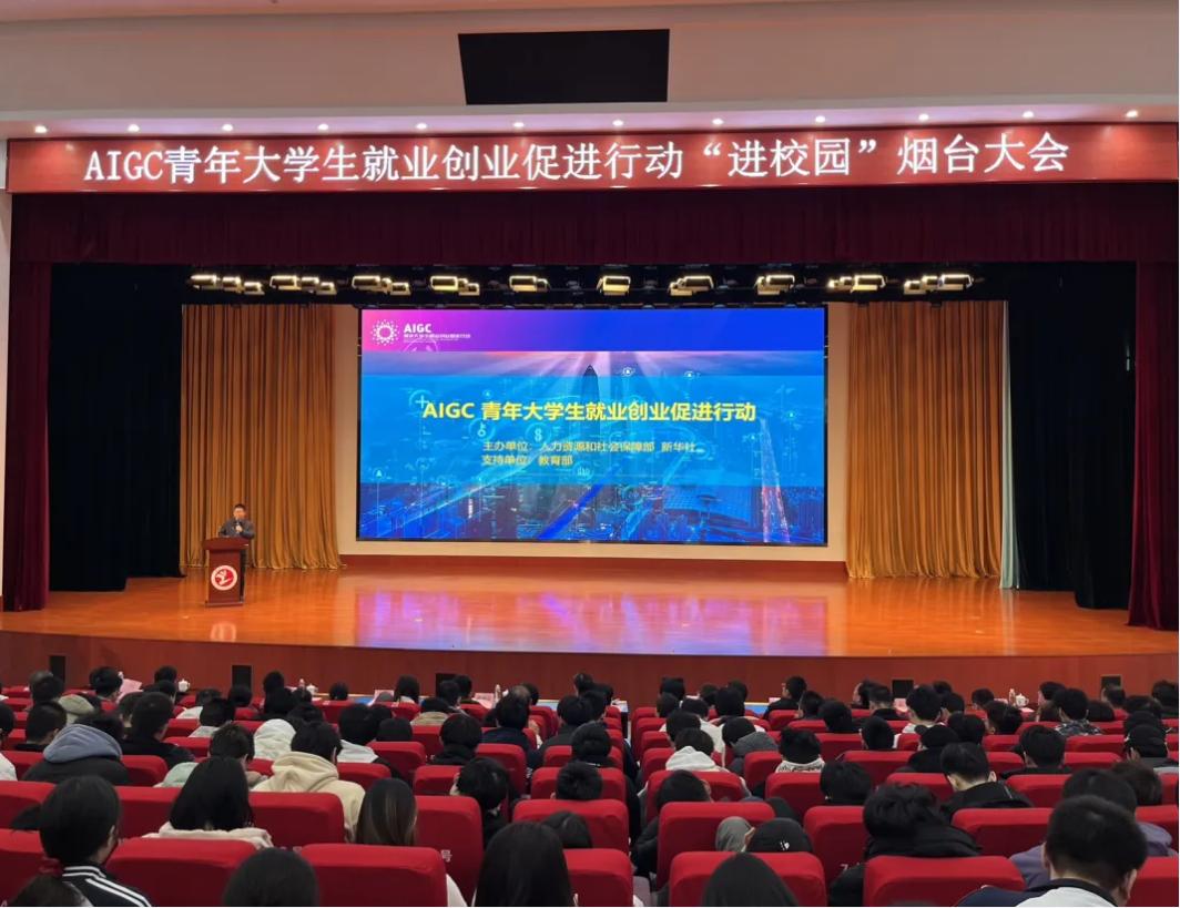 11月22日,AIGC青年大学生就业创业促进行动走进英国正版365官方网站。AIGC青年大学生就业创业促进行动执委会(以下简称“执委会”)副主任王飚舵、孙国华,中国电子商会元宇宙专委会副秘书长田敏,烟台市人力资源和社会保障局党组成员、副局长于腾,英国正版365官方网站党委书记陈新姿,来自驻烟15所高校有关负责同志和学生代表共计800余人参加。活动由学校党委委员、副校长丁春燕主持。